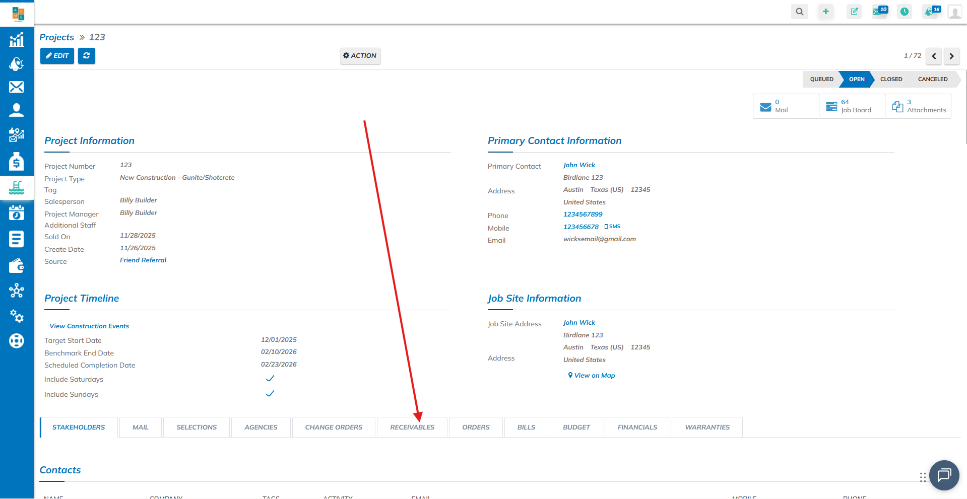Go to the "Receivables" tab