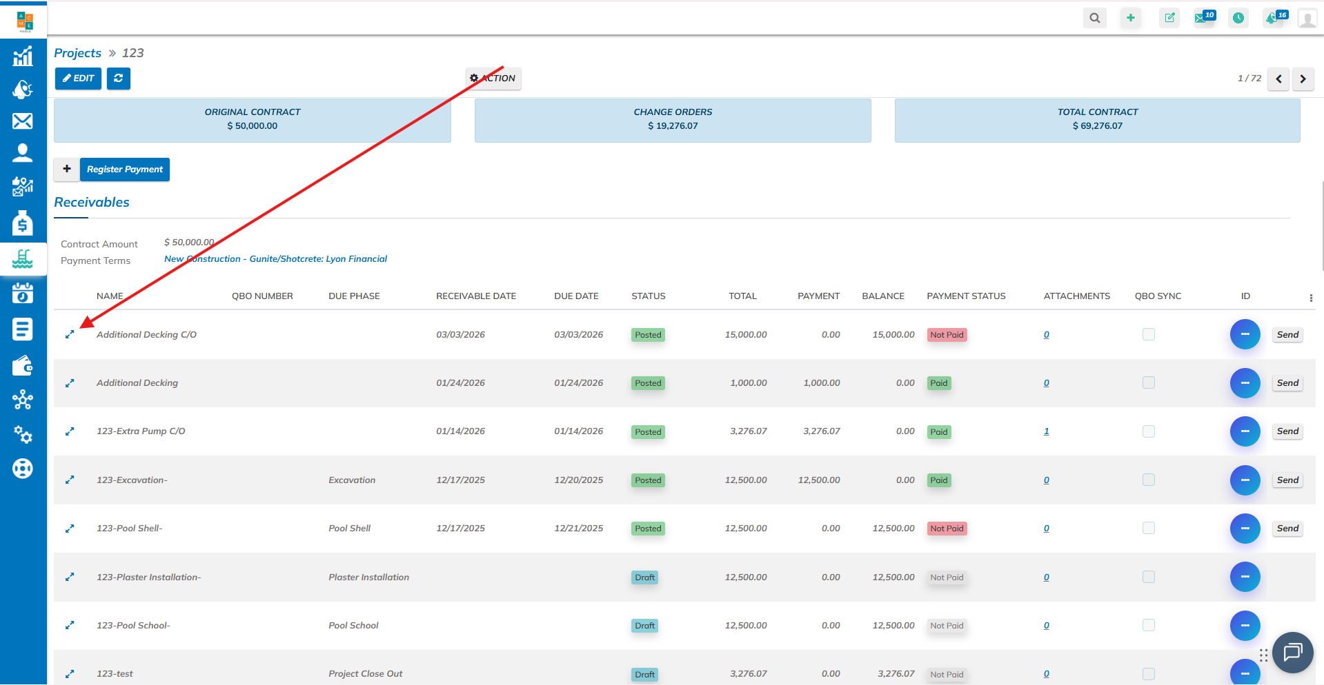 Go to your projects tab, and select the project you want to make a change to the invoices.