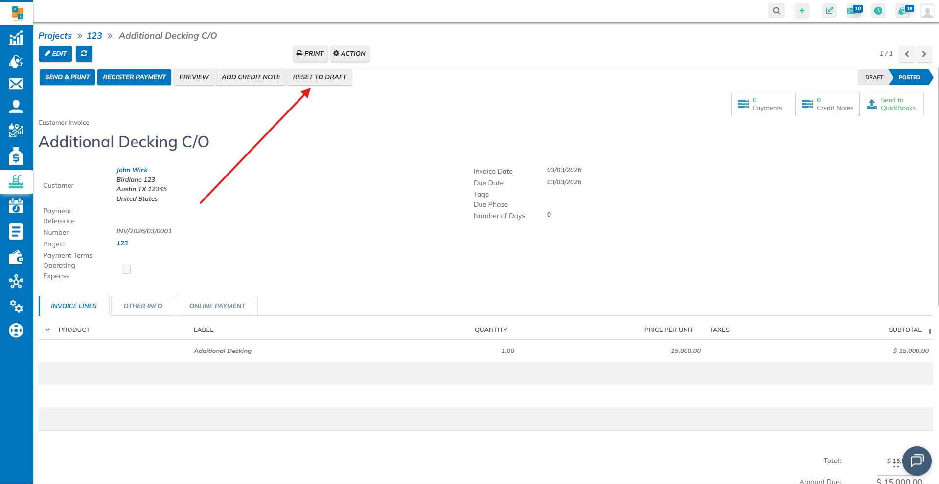 Make sure the invoice is in "Draft", if so, click on "Edit", if it's not, click on "Reset to draft", and then click on "Edit".