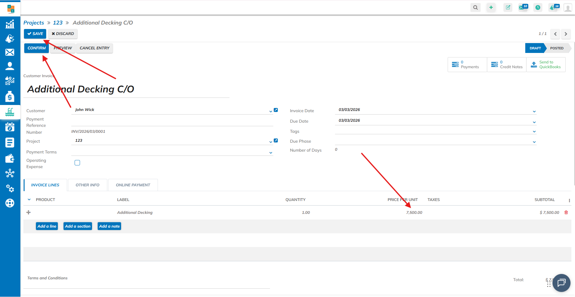 And modify it to the new amount. Click on "Confirm" to post the payment, and then click "Save".